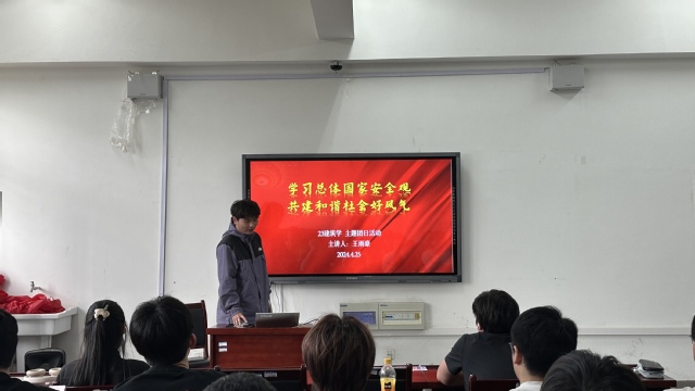 为全面贯彻总体国家安全观要求,提高学生的国家安全意识,增强对国家安全的责任感,城市建设与交通学院23建筑学于2024425日在41505教室开展树牢总体国家安全观,共建和谐社会好风气主题团日活动。本次活动由23建筑学团支书王雨豪主持,23建筑学全体同学参加。