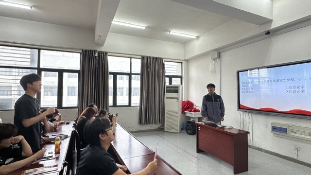 活动伊始,王雨豪首先介绍了“国家安全”的概念、“国家安全”所包含的领域,紧接着从经济安全、军事安全、网络安全等方面,以丰富的案例展示及小问答,向同学们介绍国家安全基本知识。随后,思政委员宋瑞组织同学们开展以国家安全知识为主题的“谁是卧底”小游戏,同学们热情高涨,积极参与,活动取得了良好的效果。