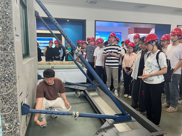 在安徽建工建筑工业有限公司,负责人热情接待了本院师生,并详细介绍了装配式混凝土结构施工工艺和套筒灌浆施工工艺,并带领同学们参观了预制叠合板、预制夹心保温外墙板、预制楼梯等构件的生产厂房。在参观过程中,同学们认真观察了各种预制构件的生产过程,并就一些技术问题与现场技术人员进行了深入的交流。他们纷纷表示,通过这次参观学习,他们对装配式建筑的施工工艺及流程有了更清晰的认识和深入的了解。