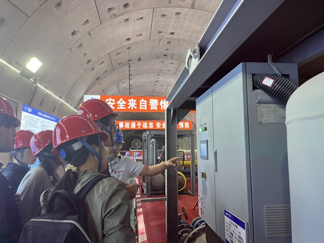 在工程现场,项目负责人员详细介绍了S1线工程的背景、设计理念、施工技术及安全管理等方面的知识,使同学们对城市地铁施工的前沿技术有了更加直观的认识。实习过程中,同学们分组参观了工程现场的不同施工区域,现场技术人员对地铁隧道开挖、盾构机工作原理、基坑支护、联络通道冻结法施工等方面进行了详细的说明。