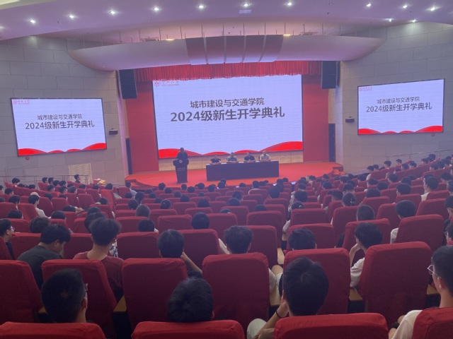 2024年9月14日下午,城市建设与交通学院在图书馆报告厅A厅举行2024级新生开学典礼,出席本次开学典礼的有城市建设与交通学院党委书记张永军、院长华建兵、副院长祝磊、各专业教师代表、新生辅导员和城市建设与交通学院2024级全体新生。本次会议由城市建设与交通学院党委副书记高乔楠主持。