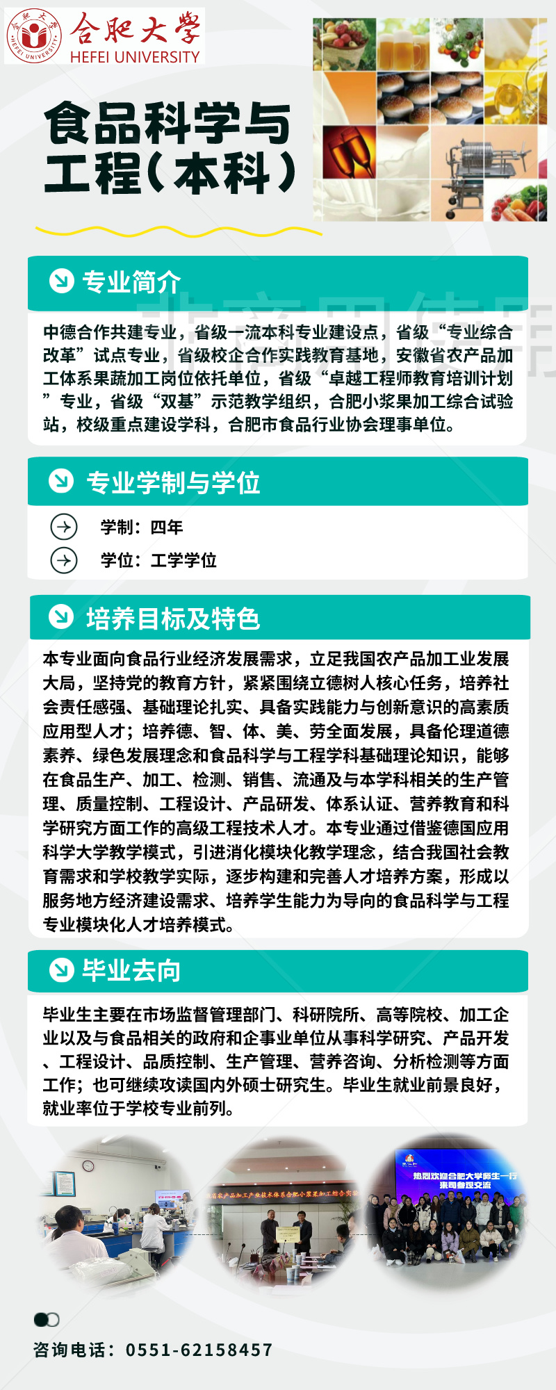 食品科学与工程(本科)                       咨询电话:0551-62158457