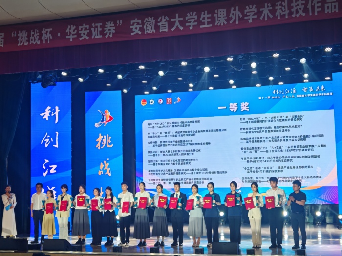 6月10日至12日,第十一届“挑战杯·华安证券”安徽省大学生课外学术科技作品竞赛省级决赛举办。我校学生作品获省级一等奖1项、二等奖8项、三等奖7项,学校获优秀组织奖。