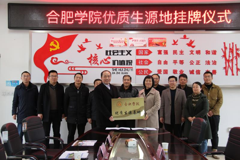 为有效做好招生宣传工作,全面提高我校生源质量2021311日,外国语学院院长侯继红、党委副处级组织员周全、副院长李洁等一行冒着寒意的春雨赴来安中学、来安三中签订合肥学院优质生源地协议并授牌。优质生源基地签约授牌仪式在来安中学五楼会议室举行。