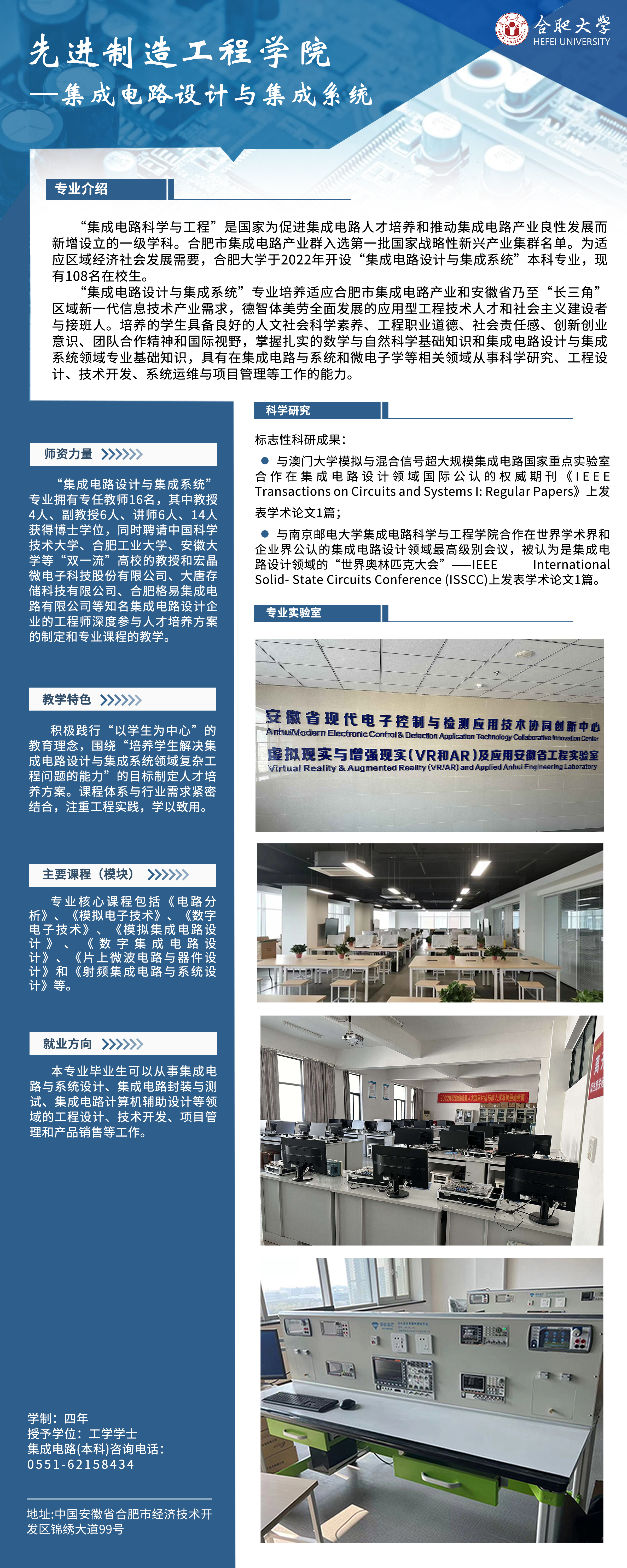 集成电路设计与集成系统(本科)    咨询电话:0551-62158434