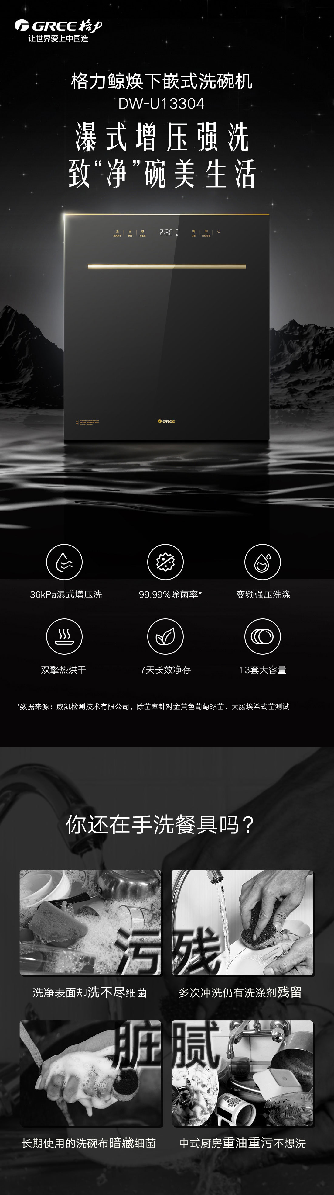 搭载瀑式增压强洗科技,,,,,,,,36KPa洗净深层菌污,,,,,,,,除菌率达99.99%;;;;;;;洗烘除存一体,,,,,,,,存放7天也干爽